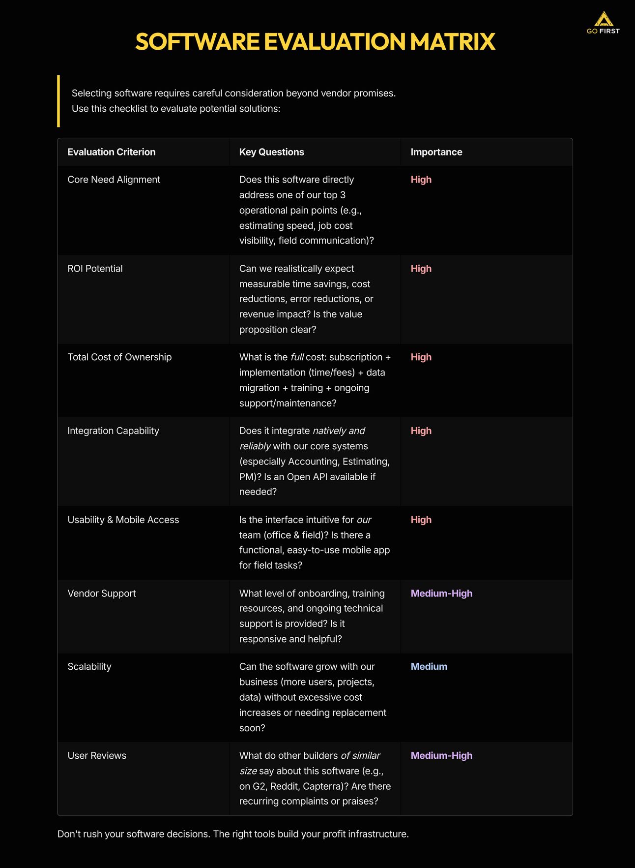 Adoption Drives Value: Even the best software yields zero return if your team doesn't use it consistently. Training and usability are crucial.