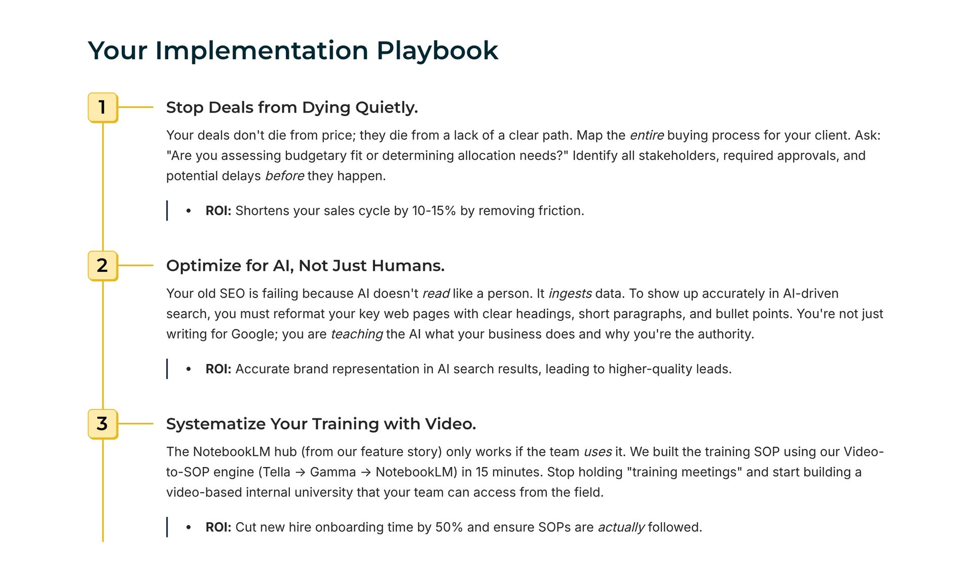 This post provides the framework for using NotebookLM as a central AI-powered "brain" for each active project, creating a single source of truth for your entire team. We'll cover the "aha moment" of a PM solving a complex issue from his phone, an architect who built his own AI to design better apartments, and tactical plays to fix your sales and SEO systems. You can build a system that cuts meeting time by 80% and drastically reduces critical errors.